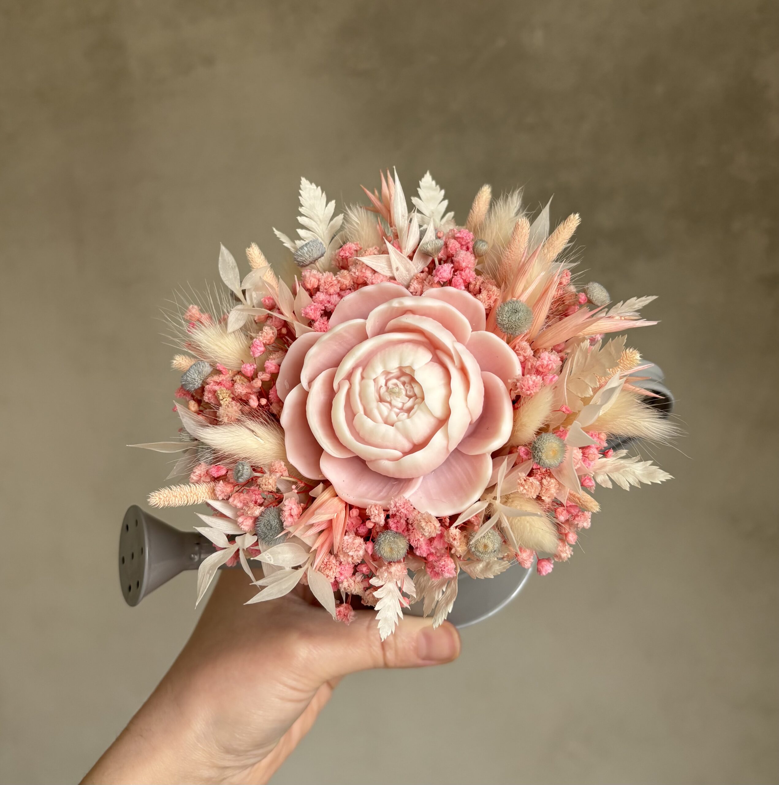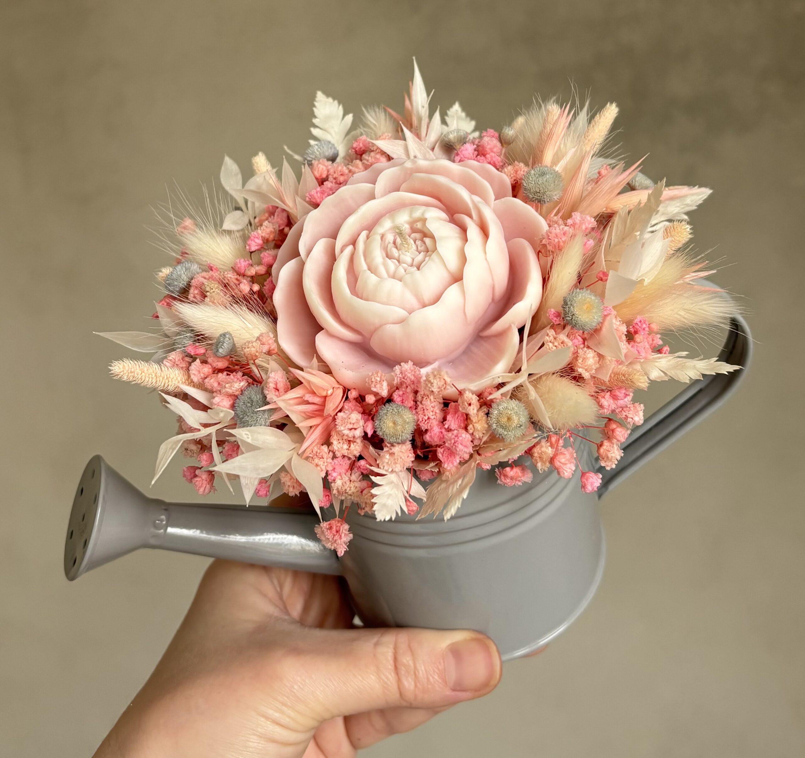 Świeca sojowa została starannie osadzona w stylowej, metalowej konewce, co nadaje całości niepowtarzalnego, rustykalnego charakteru. To idealny wybór jako upominek dla bliskiej osoby lub wyjątkowy element dekoracyjny do wnętrza – sprawdzi się zarówno w salonie, sypialni, jak i na specjalne okazje.